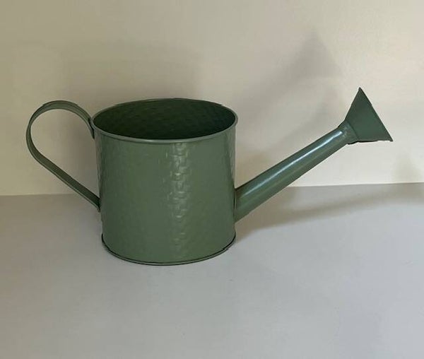 Lichtgroene siergieter met geweven structuur van het merk Countryfield. De gieter heeft geen opening is dus alleen voor de sier. De gieter is er in twee maten.