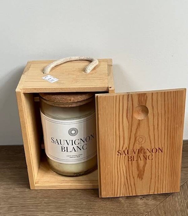 Het houten kistje, vergelijkbaar met de verpakking van een fijne wijn, maakt deze kaars tot een prachtig geschenk. Leuk om te krijgen en leuk om te geven. Verkrijgbaar in een Merlot en een Sauvignon Blanc verpakking